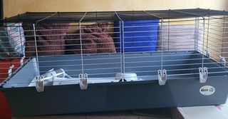 Bonjour, Je vends une grande cage que j'ai acheté neuve à Animalis 100 Euros Elle ne m'a servie que 4 mois donc vraiment en trés bon état 1,20 m de longueur 58 cm de largeur 4