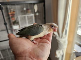 Bonjour, conure molinae en cours de sevrage, vermifugée et traitée contre les poux rouges et les acariens. Elle est adorable, pot de colle, ok avec tout le monde, oiseaux autres