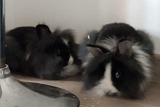 Particulier cède lapins nains tête de lion, 1 femelle et 2 mâles, couleur blanc et noir. Ils ont 5 mois.