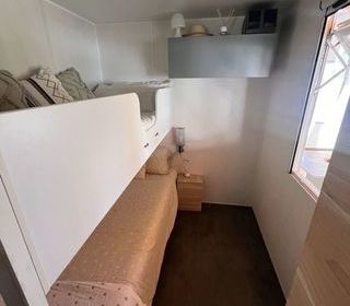 8x4m. 3 CHAMBRES ? 1 LIT DOUBLE, 2 lits simples, 3 lits simples (lit superposé gigogne) CHAISE LONGUE ? CANAPÉ?LIT (NEUF) LAVE?VAISSELLE PLAQUE VITROCÉRAMIQUE CLIMATISATION M