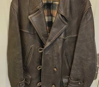 Vends+vieille+veste+en+cuir+des+années+1950+avec+sa+ceinture+et+sa+collerette+amovible,+manque+2+boutons,+cuir+à ++rénover+mais+encore+en+bon+état+pour+son+vieil+à ¢ge.+ Pour+fans+