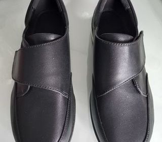 Paire de chaussures homme neuve, noire, à scratch T 43, jamais portée. Si elles peuvent faire le bonheur de quelqu'un !