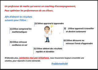Enseignant en mathématiques pédagogue qui apporte une méthode d'apprentissage et une organisation du travail pour réussir Donne cours de mathématiques à domicile et / ou à dista