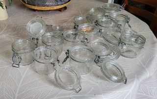 Lot de 12 terrines 200 g, fermeture avec joint non fourni : 7 marque "Le Parfait" et 5 marques ARC. Bon état