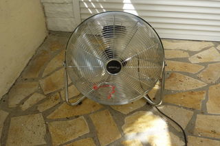 ventilateur orientable de sol 3 vitesses 220 volts 120 watts hauteur maxi 54 cm largeur maxi 54 cm epaisseur 20 cm a prendre sur place ,après essai