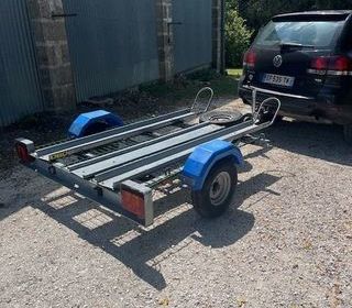 A vendre porte moto (2) Bon état Roue de secours Roue jockey Eclairage fonctionne Pneus trés bon état Année 2018