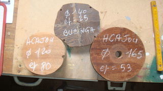 Ebauches de tournage en Acajou: 1de165 / 53 mm 1 de 120 / 80 mm 1 de140 / 25 en BUBINGA collé par section poids : 2,3 kg ( expédition possible )