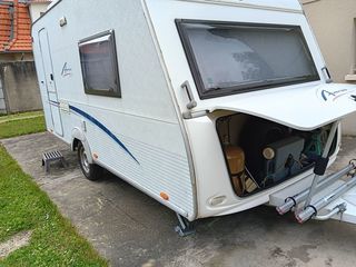 Equipée pour recevoir 4 personnes avec: -dinette gaz propane bouteille 13 kg -lit double avec surmatelas et protection + 2 oreillers + traversin -bloc cuisine -réfrigérateur 80 l e