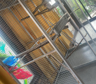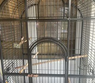 À vendre, comme neuve, grande cage avec ouverture du toit 1m60 sur 90, portes gamelles sans possibilité que l oiseau les renversent ! Très résistante Facile pour le nettoyage
