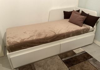 Lit enfant évolutif à barreaux 70 cm x 140 cm GALIPETTE réglable sur 3 hauteurs (quelques écaillements de peinture) + sommier à lattes en bois + matelas Ronja (coco et la