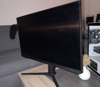 Meuble d'angle télé 68 x 68 Hauteur : 82 cm Bois blanc et marron Bon état Voir pour livraison.
