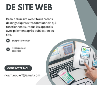 Vous cherchez un site web moderne, rapide et adapté à vos besoins ? ? Je suis développeur web freelance et je transforme vos idées en sites professionnels et fonctionnels. Que ce