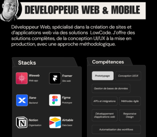 Développeur Web spécialisé en solutions LowCode, je vous accompagne dans la création de vos sites internet et applications web/mobile avec une approche rapide, moderne et méthodolo