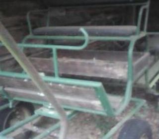 A vendre carriole à cheval 4 roues, collier américain, selle cuir, bricole, sellette...Parfait état