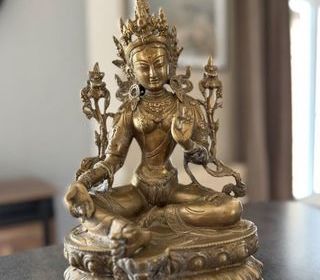 Statue ancienne de la déesse Tara, l'esprit de la compassion. Origine Tibet.
