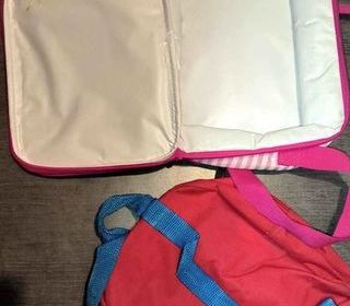 Lot sacoche dora l'exploratrice neuf avec poche élastique extérieur sur le côté plus sac mickey plus sac bandoulière Hello Kitty. 3 euros a venir récupérer sur meilhaud pas d'envoi