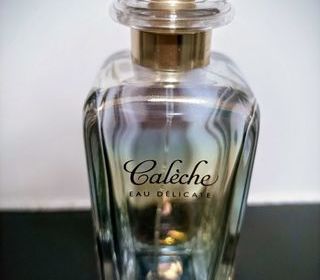 Flacon 100ml. Calèche d'Hermès, eau délicate. En très bon état, des années 70 au moins. Code 3E1F1 au dos.