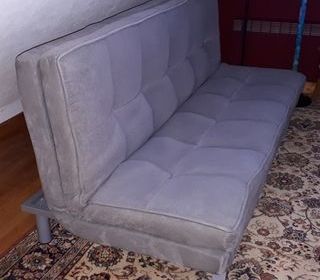 Canapé convertible en tissu gris, propre et en bon état convertible en couchage 190 cm x120 cm également convertible en méridienne Pieds en métal gris dimensions en canapé : 19