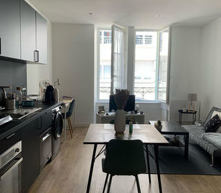 T2 meublé centre-ville lumineux, traversant, sejour double cuisine ouverte une grande chambre