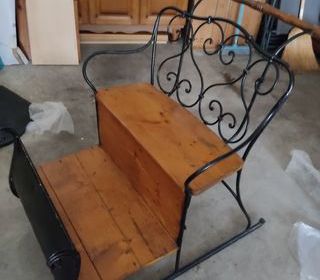 Très belle luge double ancienne, en fer forgé et bois avec assise. EXCELLENT ÉTAT, peut-être servir de déco ou de support de fleurs. 1 m de profondeur à partir de la barre, large