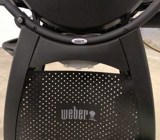 Fauteuil avec dossier capitonné, revêtement en tissu gris et pieds en bois. Etat neuf - utilisé pour décoration.