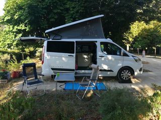 Véhicule 4 places L 4,95 l 1,92 h1,96. Boîte manuelle Regul vitesse caméra recul 4 couchage dont 2 sous toit surélevé. Cuisine Évier 2 feux gaz glacière électrique Chauff cellul