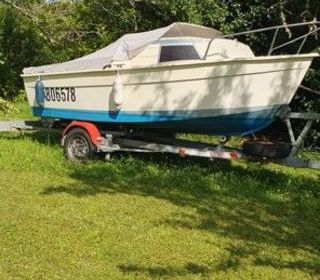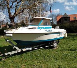 bateau Quick Silver Flamingo 520 mise à l'eau 2006 moteur Mercury 50cv 4 Temps 220h équipé pêche avec GPS et sondeur 5 places cabine couchettes largeur 2.28 ml avec remorque (2 pne