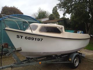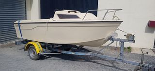 Je vend un bateau sans moteur avec cabine et sa remorque Marque : ARGUS CORSAIRE 4,30 m 5 Places, année 1993, peinture neuve Remorque: Marque PAM, charge utile 700 kg de 1999 avec