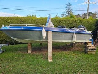 Bateau de peche fluvial avec cabine 4 place et coffres, poids total 1 t dont 300 kg a laq uille c est un binic equipé peche aux lancer