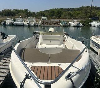 Bateau quicksilver activ 4.7 cabine en parfait état Longueur 4.7 largeur 2.32m Capacité; 5 personnes 2 couchages Moteur Mercury hors bord 4tps 50cv faible consommation 100h d'util
