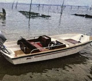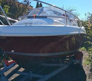 Bateau agréable en très bon état sur remorque de route et mise à l'eau immatriculée équipé de sondeur et éclairage, petite cabine aménagée, tonnelle pliable. Moteur Onda 40 CV n'a