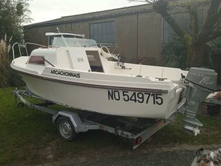 vend quiksilver 520 avec un moteur 50cv mercury mariner EFI (injection) trés bien suivit avec sa remorque frein refait pneus neuf (3 roues) il est èquipé de sonde et matériel pour