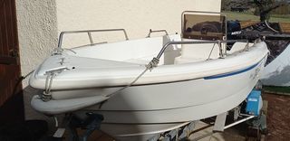 Cause avancement dans l'âge je vends mon bateau Bateau marque Coverline Marea, 4m95, coffre de rangements, table, bain de soleil, Taud. Remorque CBS 700kg. Moteur Mercury 50CV, emb
