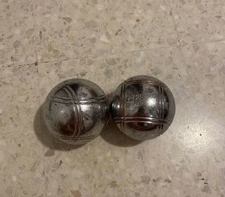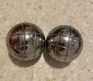 Bonjour, Je met en vente cette paire de boules de pétanques. Elles pèsent respectivement 720g et ont un diamètre d'environ 6,4 cm. Elles n'ont plus leurs chromes (ce n'est pas de