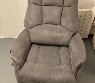 Fauteuil avec accoudoirs en bois merisier releveur 2 moteurs pour réglage dissocié des jambes et du dos releveur électrique avec télécommande. Position totale allongée 180 larg