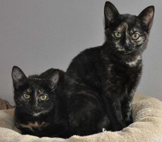 Ces deux magnifiques petites chattes écaille de tortue âgées de 6 mois attendent leur famille pour la vie. Elles ont été sevrées au contact de leur maman d'où leur caractère équi