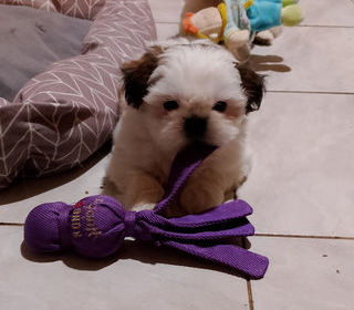 . . . . Femelles de compagnie, Shih-tzu : An -ly, Astrale, issue d'une portée de 3 bb , LOF , pucées , vaccinées , Nous vivons en famille , en libertée avec des