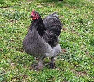 A vendre jeune coq Brahma fauve herminé noir né en mai 2025. Issu d'?ufs fécondés achetés chez un éleveur de Haute-Marne. A venir chercher avec un panier de transport ou un carto