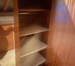 Je vous propose cette armoire vintage des années 1950 en bois, imitation acajou avec ses portes à chevrons caractéristiques et son miroir central. Un meuble authentique qui apport