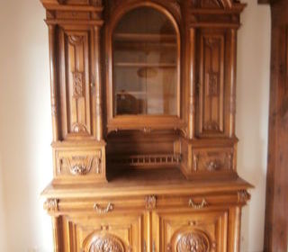 Buffet haut (2,70 m), desserte avec plateau en marcbre, table avec 3 allonges