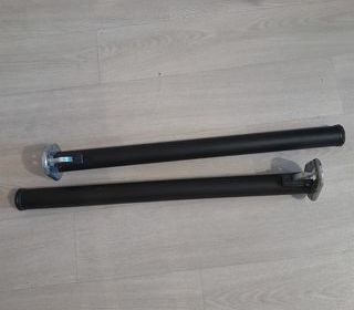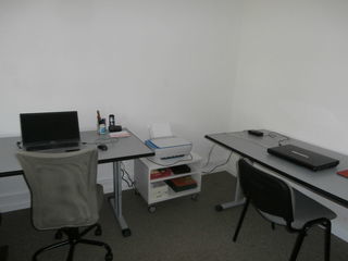 2 bureaux professionnels avec piètement robuste en métal et plateau mélaminé gris-bleu