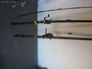 3 CANNES TYPE ANGLAISE AVEC LEURS MOULINETS 15 e l'une 1 CANNE lancers légers 10 € l'une NOMBREUX LEURRES A CARNASSIERS, CUILLERES ET LEURRES DIVERS de 1€ à 3€ 30 LEURRES SOUPES