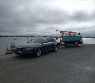 Dériveur intégral transportable avec remorque. Dériveur ATAO2 intégral de 2006 et transportable avec sa remorque de route de mise à l'eau. Remorque cassante pour faciliter la mise