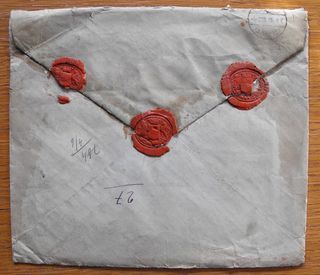 Enveloppe adressée au baron Henri de Rothschild, avec cachets de cire (brisés) au dos. L'enveloppe est un peu abîmée.