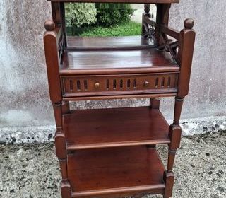 superbe petit meuble ancien de palier ou d'entrée ou d'appoint. Vous pourrez poser votre téléphone y jeter pèle mêle vos clés ou ranger quelques papiers. Avec ses 3 étagères, son t