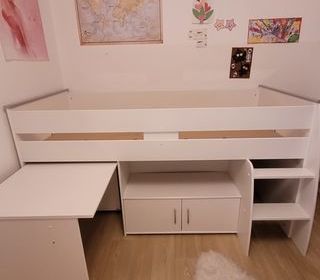 Table salle à manger modulable 180 x 90 ou 90 x 90 6 chaises blanche simili cuir blanc avec housse de protection rouge