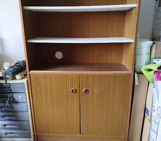 Meuble de rangement couleur bois État satisfaisant, Avec étagères H 148, l 89,5, P 36 cm