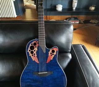 2 Lampes, hauteur pied+abat-jour 55cm, diamètre 36cm, Pied couleur bleu, abat-jour gris