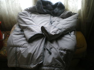 Parka de couleur grise avec col en fourrure grise et sans capuche de marque Gabriella Vicenza. Taille 42/44. Size 14.Deux poches et fermeture par quatre boutons de type Brandebourg