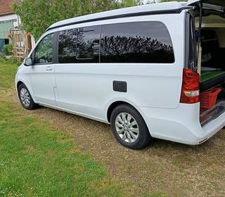 Mercedes Vito Marco Polo Année 2015 Boite automatique 4 places 4 couchages Attelage Sièges avant tournant Clim Frigo Gaz 2 feux Réserve d'eau et évacuation 2 batteries Branch